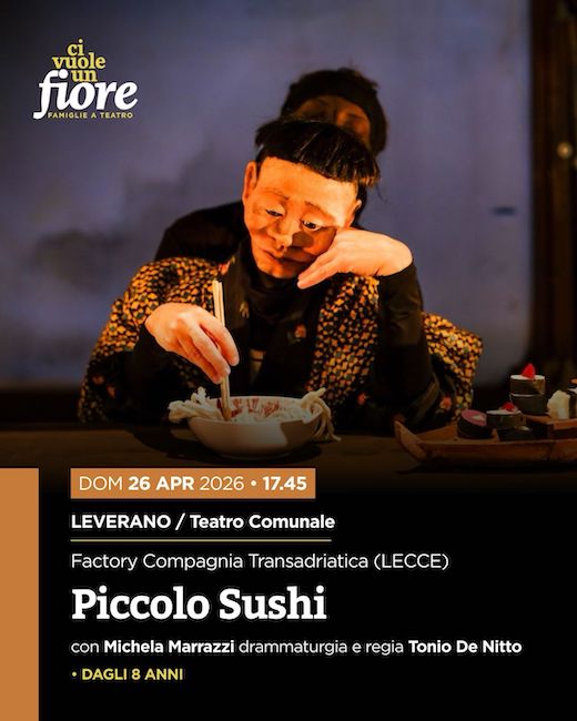 “Piccolo Sushi” di Tonio De Nitto con Michela Marrazzi, al Teatro Comunale di Leverano, chiude la rassegna Ci vuole un fiore – famiglie a teatro