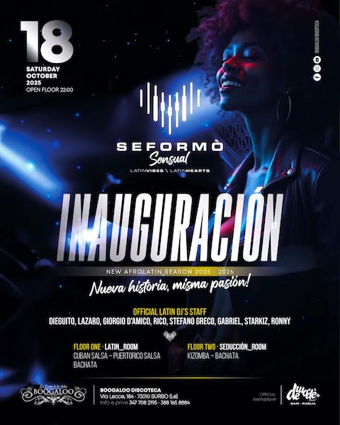 Il Boogaloo cambia veste, ma resta fedele alla sua anima latina, quella che in questi anni ha fatto ballare e innamorare generazioni di salseri, bachateri e kizomberos, con uno sguardo nuovo: più sensuale, più contemporaneo, più vicino alle vibrazioni del mondo latino di oggi.