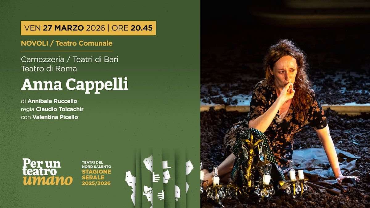 Venerdì 27 marzo la stagione Per un teatro umano del progetto Teatri del Nord Salento prosegue con “Anna Cappelli”, spettacolo di Annibale Ruccello con Valentina Picello, per la regia di Claudio Tolcachir
