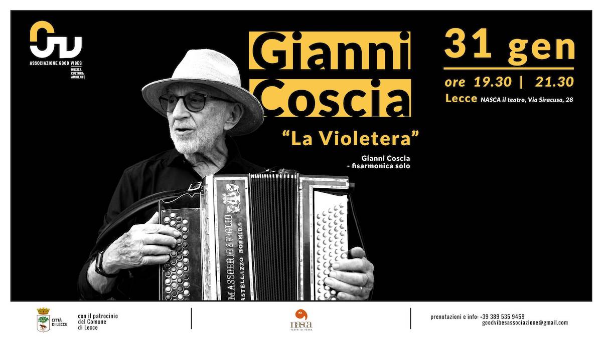 Lecce, Good Vibes: concerto di Gianni Coscia