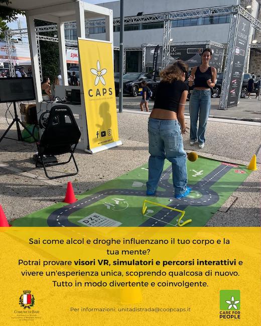 Le Unità Mobili “LGNET” e “Care for People”, al parco Rossani, proporranno laboratori interattivi, giochi, sensibilizzazione sui rischi di alcol e droghe