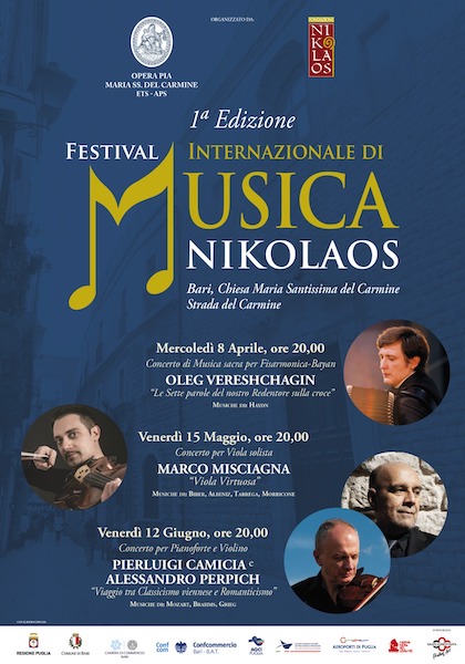 «La Fondazione Nikolaos è felice di organizzare e promuovere un Festival di tale portata artistica internazionale – dichiara entusiasta il Presidente Vito Giordano Cardone – L’evento nasce dalla volontà di guidare il pubblico in uno straordinario viaggio musicale che, al contempo, sappia valorizzare le espressioni culturali e tradizionali legate all’identità profonda di Bari, città storicamente eletta per dialogo tra popoli, grazie al culto per San Nicola».
