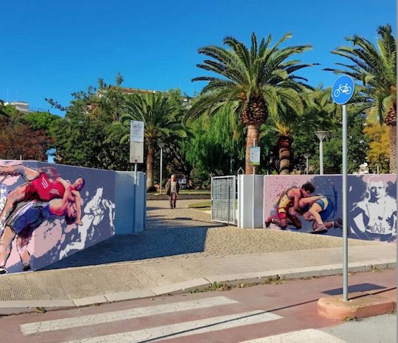 BARI – È stato inaugurato questa mattina, all’ingresso del giardino Morvillo, in via della Costituente, il murale realizzato dal duo artistico Sungre quale omaggio alla lotta greco-romana, su iniziativa dell’associazione Retake Bari.