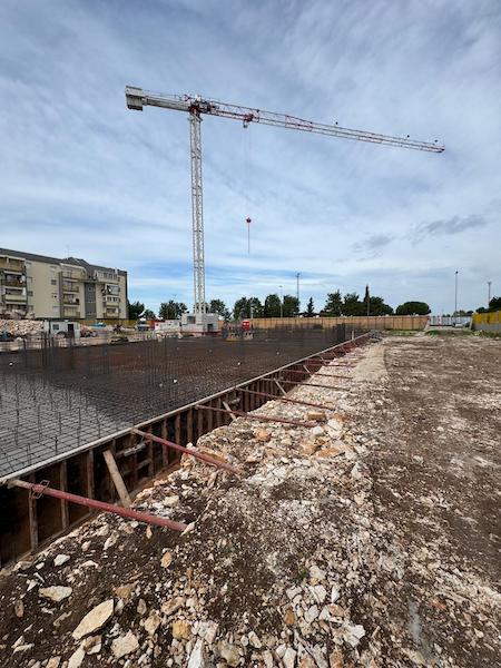 Sono attualmente in corso le operazioni di sbancamento della superficie su cui sarà costruito il nuovo edificio, di realizzazione del magrone di fondazione, di posatura dei ferri dell’armatura e getto del calcestruzzo. La nuova struttura avrà forma rettangolare, con dimensioni massime di circa 88 metri per 17. L’edifico si svilupperà su cinque piani, allineandosi con le due testate a quelle degli edifici esistenti, di cui manterrà la lunghezza.