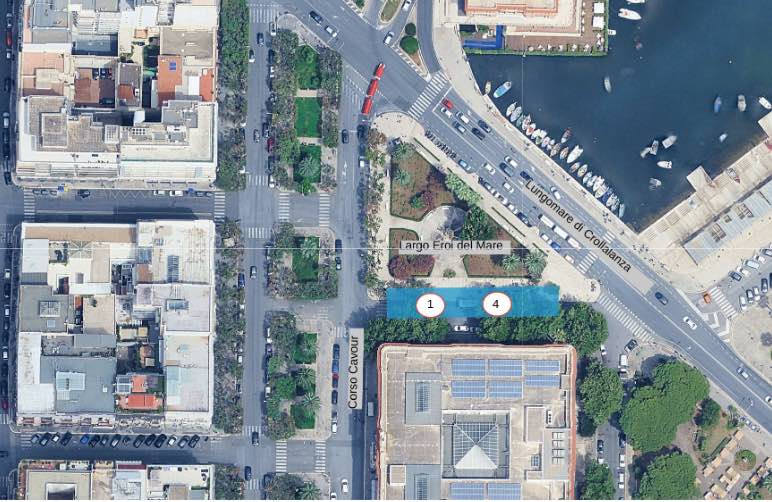 largo Eroi del Mare, nel tratto stradale compreso tra lungomare Araldo di Crollalanza e corso Cavour, lato destro di marcia