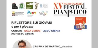 Venerdì 28 novembre, nella Sala Verde del Comune di Corato per Giovani talenti al Festival Fausto Zadra riflettori accesi su Cristian De Martino, 21enne pianista gravinese