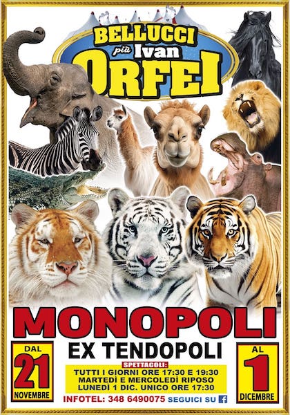 La carovana, che sta girando ininterrottamente il Sud Italia da 12 mesi, torna in terra di Bari dopo il grande successo nel sesta provincia, a Trani. Sotto lo chapiteau sarà proposto uno spettacolo emozionante, adrenalinico e coinvolgente con attrazioni, tanto divertimento e artisti di grande fama. Non mancheranno gli animali, da quelli più comuni a quelli esotici.