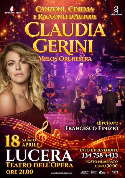 Il 18 aprile al Teatro dell’Opera di Lucera Claudia Gerini si esibirà con la Melos Orchestra tra cinema e musica d’autore
