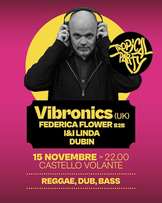 Ospite speciale dell’evento sarà Vibronics: dal 1996 il collettivo reggae britannico fondato e guidato da Steve Gibbs fa tremare i club e i festival di tutto il mondo con i suoi bassi profondi e le sue produzioni visionarie. Con oltre settanta release sull’etichetta Scoops, collaborazioni con artisti come Michael Prophet, Iration Steppas e Macka B e tour in ogni continente, è una delle voci più autorevoli della scena dub internazionale.