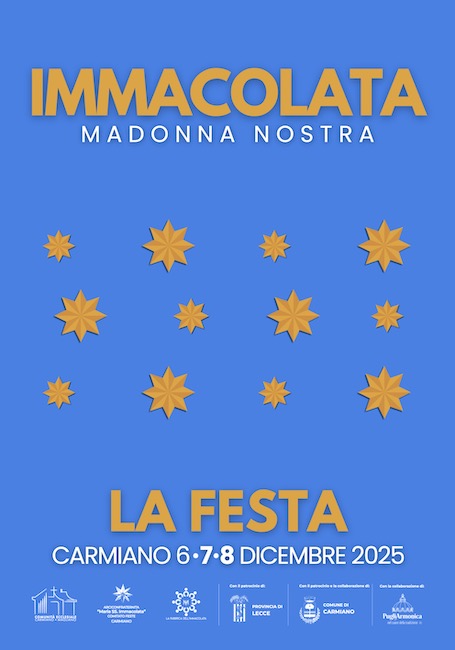 CARMIANO (LE) – Il Salento festeggia l’Immacolata a Carmiano , domenica 7 e lunedì 8 dicembre. La celebrazione della “Madonna Nostra” si consolida anche quest’anno come grande festa patronale nel piccolo centro salentino che apre le proprie porte per condividere un’antica occasione di forte devozione e ritualità.