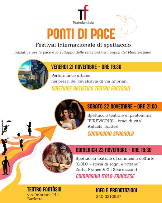 BARLETTA – Il Teatro Fantàsia presenta la prima edizione del Festival Internazionale “Ponti di Pace”, in programma dal 21 al 23 novembre 2025.