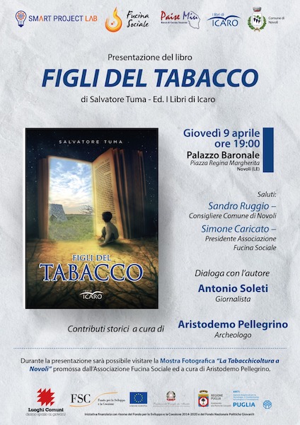“Sin dalla genesi di questa iniziativa, ci è stato chiaro come le bellissime pagine del romanzo di Salvatore Tuma, potessero offrire alla nostra Associazione l’opportunità di ripercorre un pezzo della nostra storia Salentina e locale, fatto di lavoro, sacrifici e lotta per i diritti. Soprattutto a Novoli, la presenza di ben 13 Fabbriche e oltre 1000 addetti , ci permettono di pensare che non ci sia un solo novolese che non abbia almeno un parente che ha lavorato nella raccolta e nella lavorazione primaria del Tabacco” afferma Simone Caricato, presidente dell’Associazione Culturale Fucina Sociale, promotrice dell’evento.