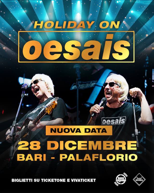 Al seguito del grande successo in prevendita della prima data di sabato 27 dicembre, è stata annunciata la replica di domenica 28 dicembre. Due grandi feste in cui il Palaflorio a Bari si riempirà con “Holiday on Oesais”, lo show che promette di chiudere il 2025 fra musica, comicità e spirito natalizio.
