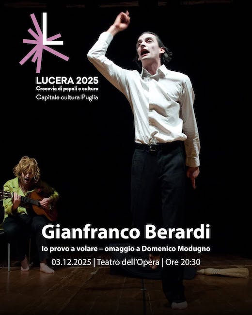 L’omaggio a Domenico Modugno dell’attore ipovedente Gianfranco Berardi chiude la serie di Progetti speciali di Welfare Culturale a Lucera. Alle 18.30 il talk con Antonio Giampietro, garante dei Diritti delle persone con disabilità della Regione Puglia