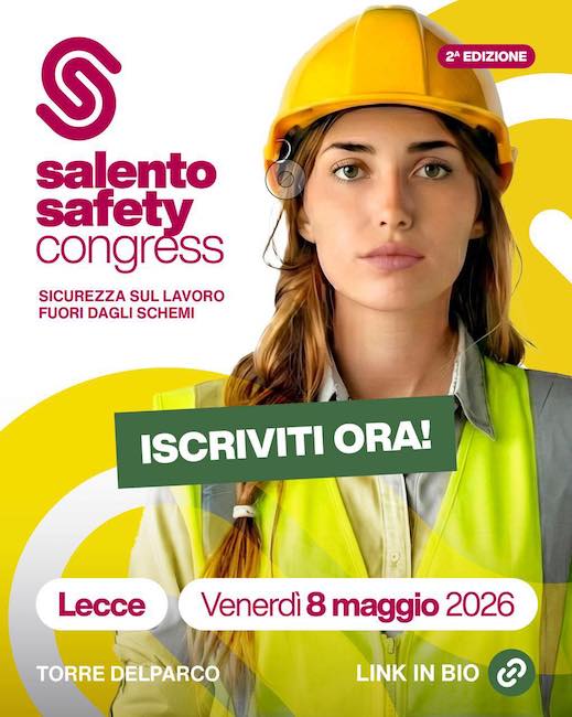 Venerdì 8 maggio, a Torre del Parco a Lecce, la seconda edizione del meeting dedicato alla salute e alla sicurezza nei luoghi di lavoro con ospiti di rilievo nazionale