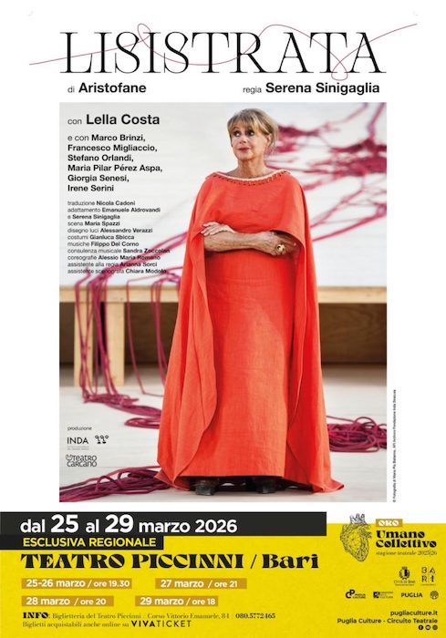 Al Teatro Piccinni, per la stagione teatrale del Comune di Bari, organizzata con Puglia Culture, in esclusiva regionale, va in scena “Lisistrata”, spettacolo tratto da Aristofane e firmato dalla regista Serena Sinigaglia