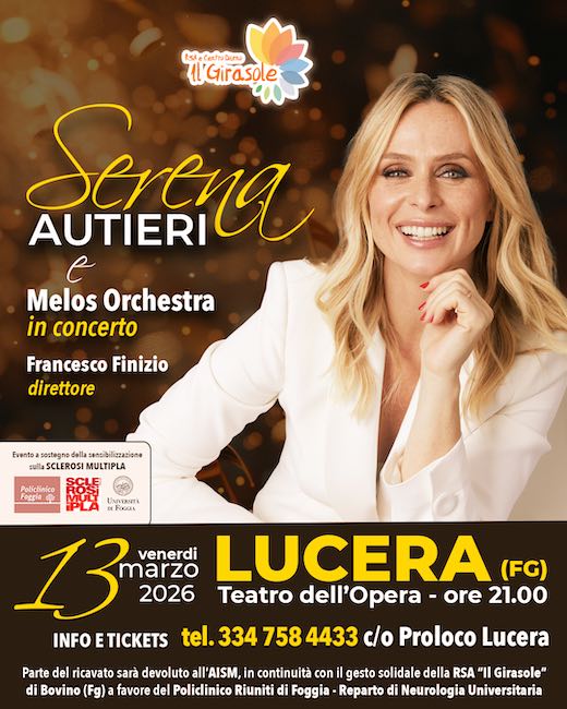 LUCERA (FG) – Serena Autieri sarà protagonista a Lucera di una serata evento in programma venerdì 13 marzo, alle ore 21.00, al Teatro dell’Opera.