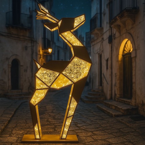 Accanto alle luminarie lineari, un ricco programma di installazioni tridimensionali contribuirà a costruire una narrazione luminosa emozionale. A Loseto Nuova, l’ingresso del parco Mizzi sarà impreziosito da una grande renna dorata che accoglierà i visitatori. Nel quartiere Santa Rita, una stella 3D valorizzerà piazza Pertini, mentre un Babbo Natale seduto sarà collocato lungo via Fratelli De Filippo, in prossimità del Palazzetto; nel giardino di via Lama del Duca troverà invece spazio una renna adornata da sfere luminose.