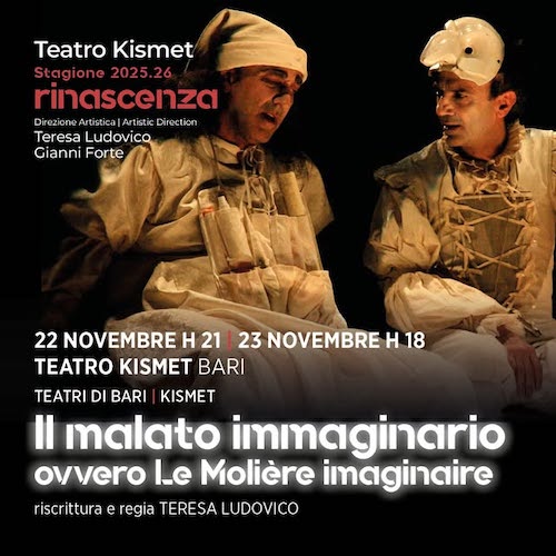 BARI – L’adattamento della celebre commedia ‘Il malato immaginario’ di Molière torna sul palcoscenico del Teatro Kismet di Bari per la Stagione serale 2025/26 Rinascenza. Sabato 22 novembre alle ore 21 e domenica 23 novembre alle ore 18 in scena Il malato immaginario ovvero le Molière imaginaire, produzione Teatri di Bari | Kismet con Augusto Masiello, Marco Manchisi, Sara Bevilacqua, Michele Cipriani, Savino Maria Italiano, Lucia Raffaella Mariani e Paolo Summaria.