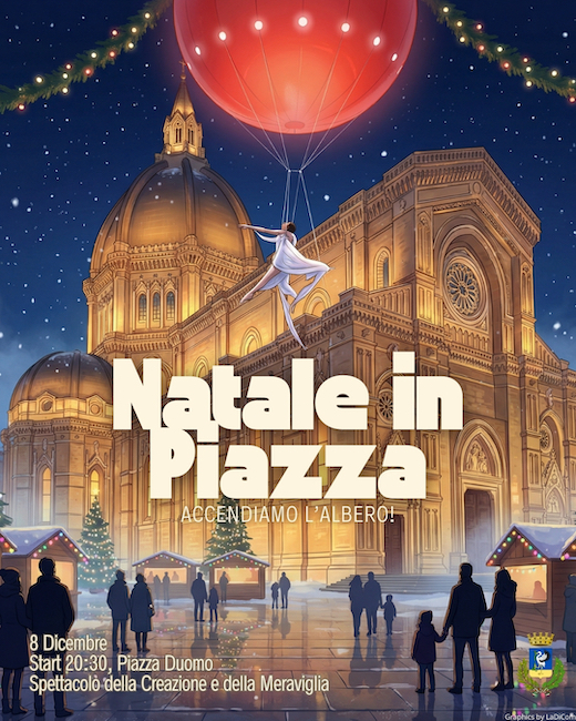 CERIGNOLA – Sarà lo spettacolo della creazione e della meraviglia ad accompagnare l’accensione dell’albero di Natale che avverrà lunedì 8 dicembre in Piazza Duomo, a Cerignola. L’esibizione, eseguita dalla Compagnia dei Folli, inizierà per le ore 20:30.