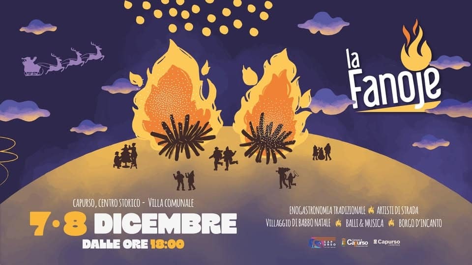 CAPURSO- Capurso entra nel vivo delle festività natalizie con un doppio appuntamento centrale che illuminerà il cuore del paese tra tradizione, creatività e partecipazione collettiva. Il 7 e l’8 dicembre il centro storico e l’area antistante la Reale Basilica della Madonna del Pozzo saranno teatro delle Fanoje, l’antico rito del fuoco che ogni anno richiama cittadini e visitatori attorno ai falò, tra musica popolare, sapori autentici e momenti di convivialità.