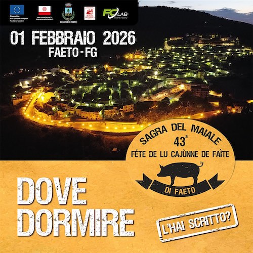 “Il maiale, nella cultura locale – ha spiegato il sindaco Michele Pavia – è simbolo di autosufficienza, rispetto per la materia prima e attenzione alla qualità, valori oggi più che mai attuali in un contesto che riscopre l’importanza delle filiere corte, della sostenibilità e delle relazioni tra produttori e comunità. Con la sua doppia denominazione, italiana e francoprovenzale, la Sagra del Maiale di Faeto ribadisce il valore della lingua, della memoria e dell’appartenenza, confermandosi non solo come evento gastronomico, ma come vero e proprio laboratorio culturale capace di generare connessioni tra i paesi dei Monti Dauni e l’intero comprensorio dauno”.