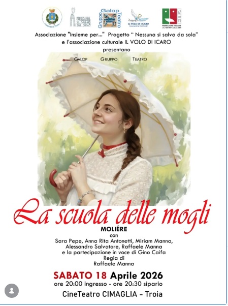 Al CineTeatro Cimaglia di Troia, lo spettacolo proposto dalla compagnia Galop Teatro con la regia di Raffaele Manna; il ricavato sosterrà il progetto contro la violenza di genere “Nessuna si salva da sola”