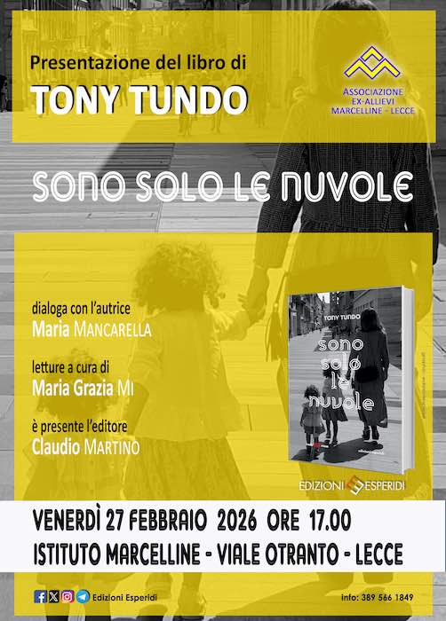 Tony Tundo (Galatina 1949) è docente in pensione di Latino e Greco inizialmente, poi di Letteratura Italiana e Storia negli Istituti superiori. Più volte presidente negli Esami di Stato e commissaria negli esami abilitanti per l’insegnamento presso Università del Salento. Ha coordinato dal 2004 al 2013 la filiale salentina della Fondazione Onlus Popoli e Costituzioni con sede a Modugno (Bari), organizzando eventi e convegni che hanno visto la partecipazione di numerose personalità culturali e politiche del territorio per promuovere la difesa e l’attuazione del dettato costituzionale. Ha scritto per la rivista della Fondazione stessa Sudcritica.it nelle sezioni Cultura e spettacolo e Cronaca. Contemporaneamente è stata vicepresidente dell’Università popolare Aldo Vallone a Galatina.