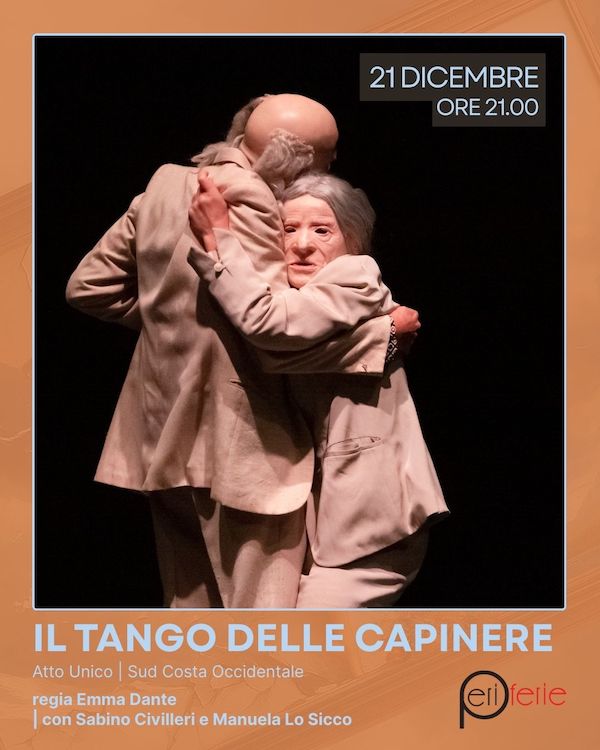TARANTO – Regista e drammaturga dalla forza espressiva tra le più vigorose del teatro contemporaneo europeo, Emma Dante presenta a Taranto «Il tango delle capinere», oggi, domenica 21 dicembre, alle ore 21.00, all’auditorium TaTÀ, per la stagione «Periferie» del Crest sostenuta dalla Regione Puglia. Uno spettacolo con il quale l’acclamata artista siciliana, ancora una volta impegnata a comporre delicati e intensi mosaici dei ricordi, racconta l’amore tra due anziani interpretati da Sabino Civilleri e Manuela Lo Sicco, interpreti che con Emma Dante hanno affrontato un lungo percorso, condividendo il legame con la lingua e la cultura siciliana così presenti da oltre vent’anni, in modo originale e inconfondibile, nelle drammaturgie dell’autrice.