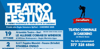 Torna il Teatro Festival di CarusTeatro Aps; in scena il primo spettacolo “Le allegre comari di Windsor” di William Shakespeare nell’allestimento di “Artemisia Teatro” di Bari con la regia...