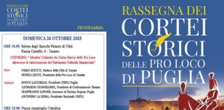 TARANTO- Domenica 26 ottobre il centro storico di Taranto ospiterà la VII edizione della Rassegna dei Cortei Storici delle Pro Loco di Puglia, un evento che celebra le radici,...