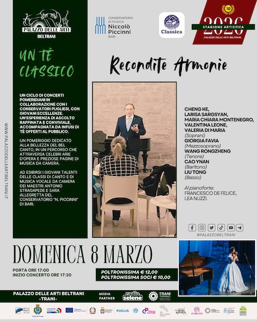 Domenica 8 marzo, il Conservatorio “Niccolò Piccinni” di Bari inaugura il ciclo con “Recondite Armonie”